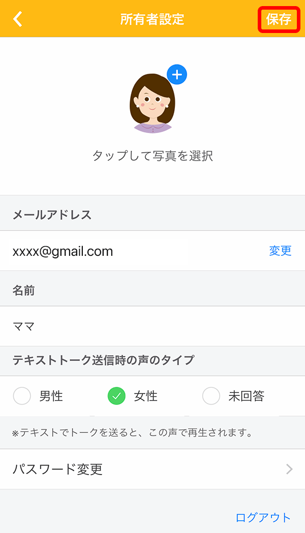 所有者情報の設定変更は、全てアプリ内で行います。