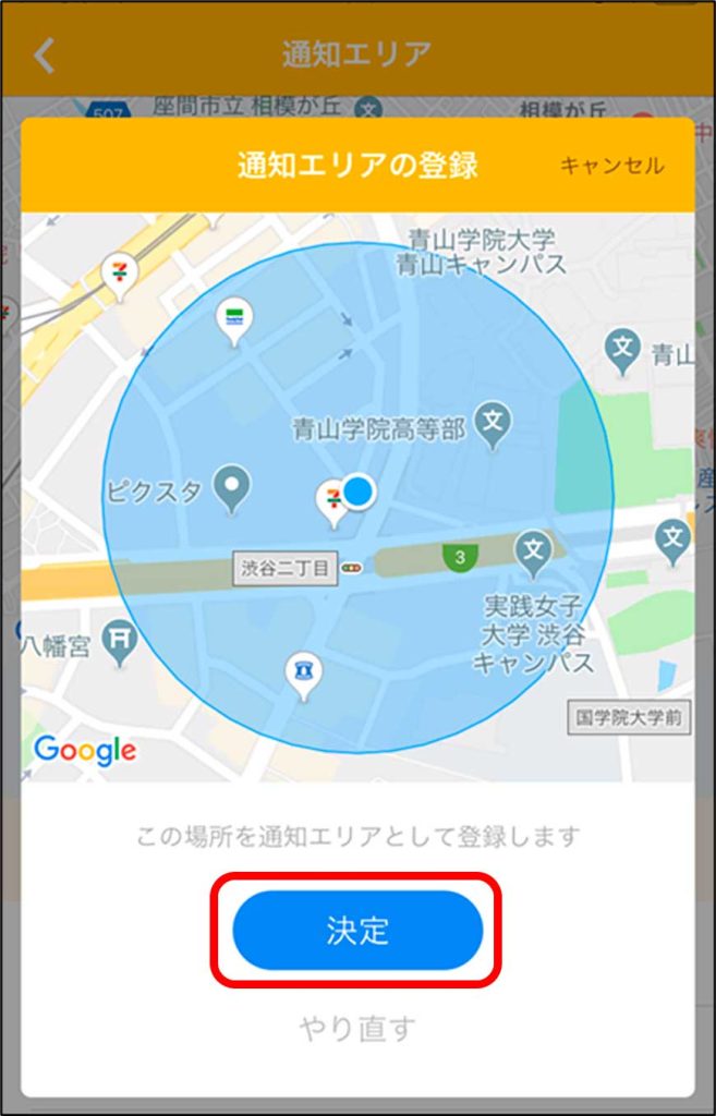 登録を押すと通知エリアの登録は完了です。