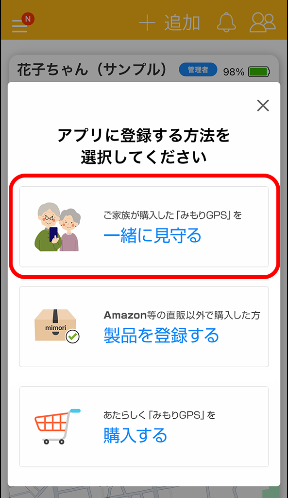 一緒に見守りを行う「購入者以外の方」へ追跡コードを共有します。