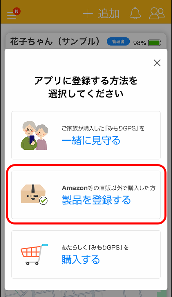 作成したアカウントに製品登録を行うことで、購入した「みもり」の情報が紐づけされます。